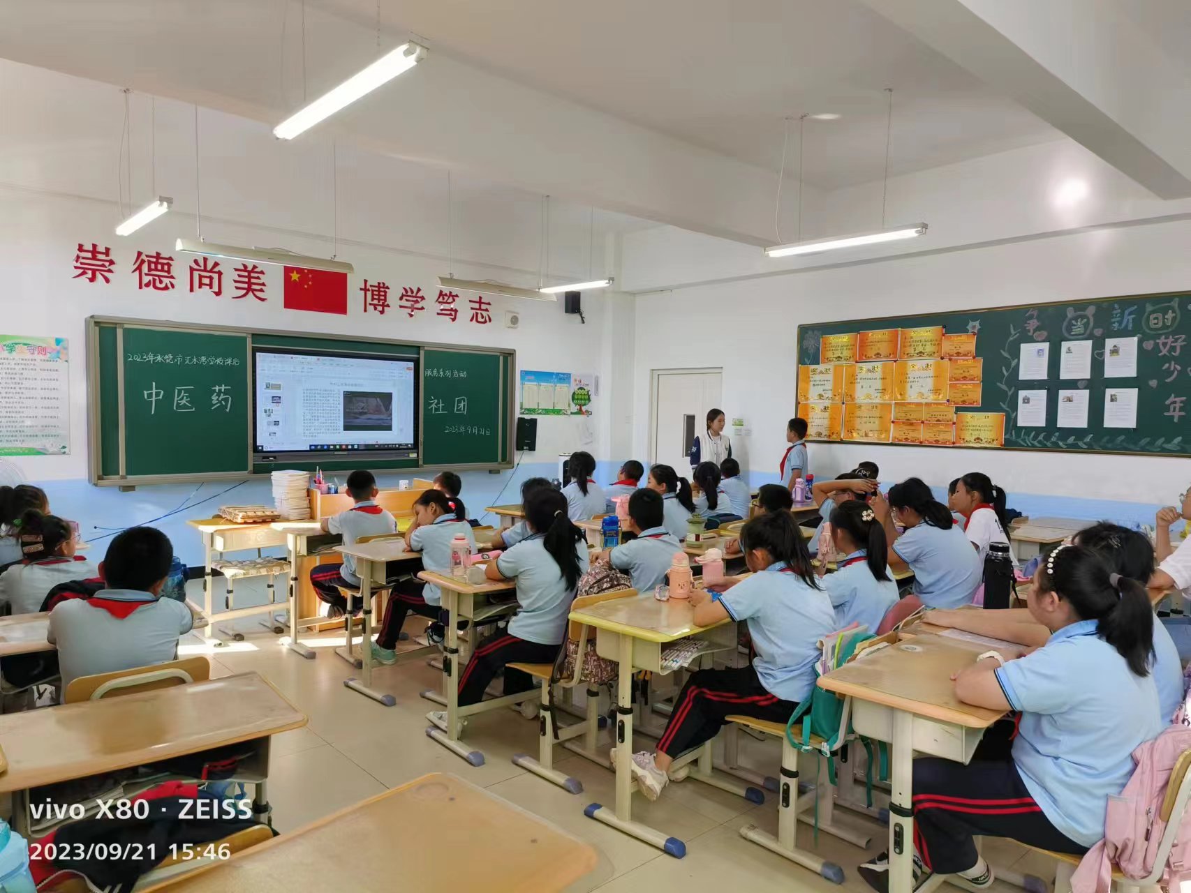 中华文化源远流长,中华文明博大精深。习近平总书记在文化传承发展座谈会上的重要讲话,是建设社会主义文化强国和中华民族现代文明的行动指南。为全面持续贯彻落实《“十四五”中医药文化弘扬工程实施方案》,增进青少年对中华优秀传统文化的认知,培养青少年养成健康的生活方式。2023年9月21日,由承德医学院中药学系主办,河北省生命科学探索与教育科普基地协办,携手承德市汇水湾学校开展“大手拉小手一起跟党走暨中医药文化进校园”科普进课堂活动。此次科普活动由中药学系师生科普志愿讲解员为主,是开展中医药文化科普进课堂科普活动的第四年。利用课后延时,开展社团服务,通过展示将生活中常见的中药材制作标本的具体实践操作,带领同学们走进本草的世界,向青少年普及中医药常识。 在这次的讲解中,科普志愿讲解员与学生亲切互动,利用采摘到的生活中常见的中草药,如蒲公英、苦麦菜、山楂等,通过实物、视频、图片结合PPT讲解,介绍中草药的博大精深。同时,为加强中医药文化实践,提高青少年的学习兴趣,使青少年有了更多的参与感和体验感,讲解员指导学生亲手制作植物标本。学生们热情高涨,纷纷实践,对中医药文化有着浓厚兴趣,场面非常活跃。 一株小草改变世界、一枚银针联通中西、一缕药香跨越古今……大学生与小学生的互动,充分展示了大中小一体化教育模式,不仅培养了青少年的中医药文化素养,也促进了大学生德育与美育的全面发展。中医药学是中华民族的伟大创造,作为中医药文化的弘扬者和传承者,要充分发挥中医药作为中华文明宝库“钥匙”的独特作用,使青少年更多的了解中华优秀传统文化,必将为健康中国建设注入源动力,使中华优秀传统文化生生不息、代代相传!