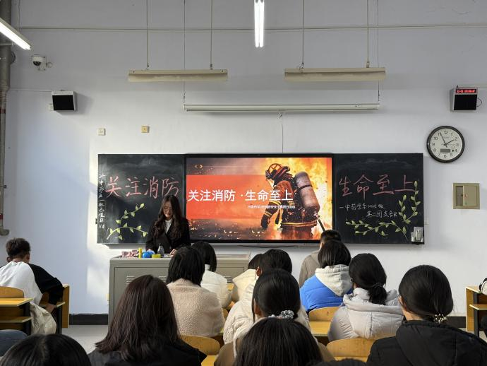 学习消防知识,守护生命安全。为提升团员青年消防安全意识与应急技能,中药学系药学第二团支部于2025年11月11日以“关注消防·生命至上——青年在行动”为主题,开展了一场内容丰富、形式多样的消防安全主题团日活动。支部全体团员参加,安全处宋雷、张永祥老师及辅导员李凯鹏老师应邀出席。 活动在实验楼教室124拉开帷幕,主持人首先介绍了活动背景与意义,强调消防安全对校园和生活的重要性。随后,辅导员老师号召全体团员以积极态度参与活动,在学习与实践中筑牢安全防线,宣布活动正式开始。