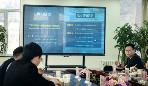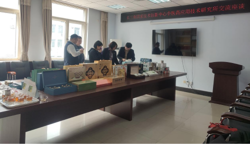 赵春颖所长围绕机构设置、科研平台、师资队伍、研究方向、成果转化及合作需求作专题汇报。中药研究所实行系所合一运行模式,拥有7个省级科研平台,双师型教师占比83%、博士占比42%,形成中药资源综合开发、药效物质基础研究、安全性评价、中药新剂型研发四大核心方向。会上重点展示黄芪茎叶清热解毒胶囊、中药饲料添加剂、黄芩专用有机肥等转化成果,以及养生茶饮、四季香囊等快消品,依托全产业链技术体系,可提供中药材种植加工、园区规划、GAP认证、质量标准制定等全方位服务。